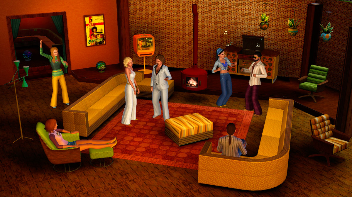 70-е года подарят вашим Симам модную одежду этого десятилетия, ваши подопечные будут выглядеть потрясающе в стильном топе и джинсах клеш. Также ожидайте мебель в стиле 70-х, это украшение в виде зеркального шара, стереосистема и многое другое.